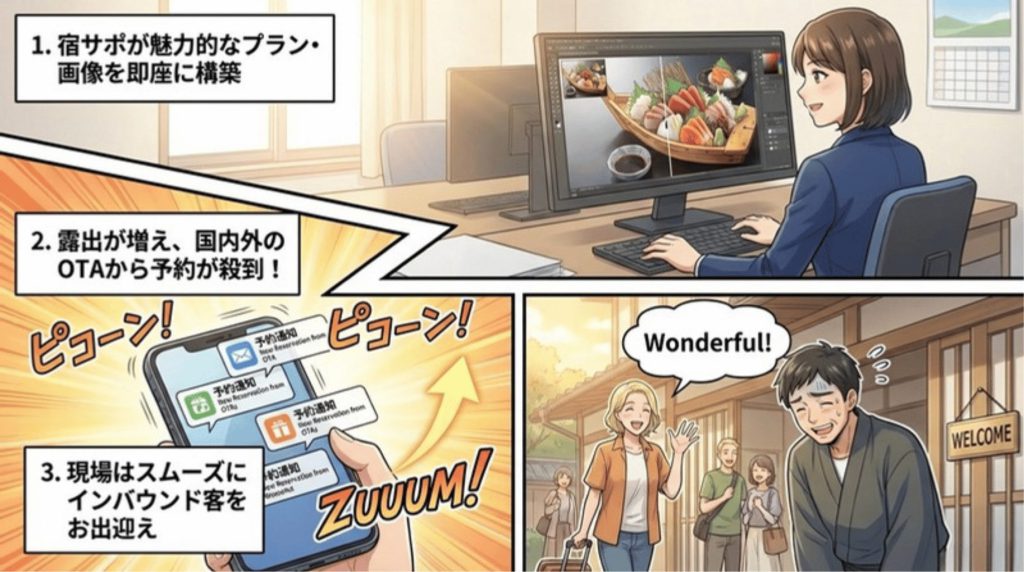 一方で受け入れる側のホテル・旅館さまは日々の業務に追われ、思うような集客計画が立てられない。