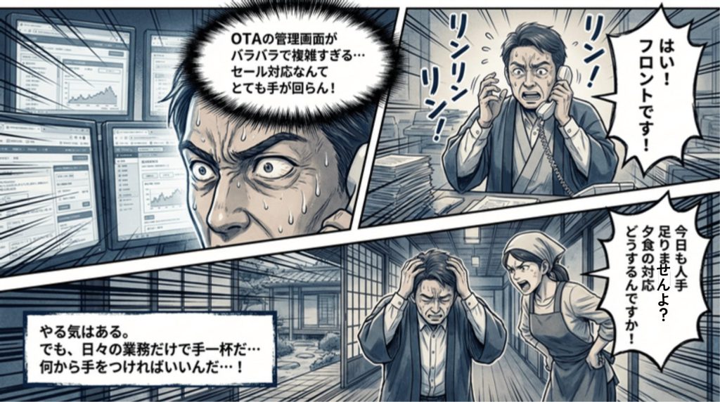そう、OTA担当者と言ってもほとんどの施設様は他の仕事と兼務ですよね。