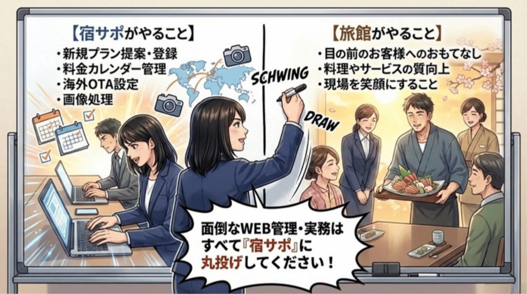 そんな施設さまのお力になるのが宿泊トータルサポートです。