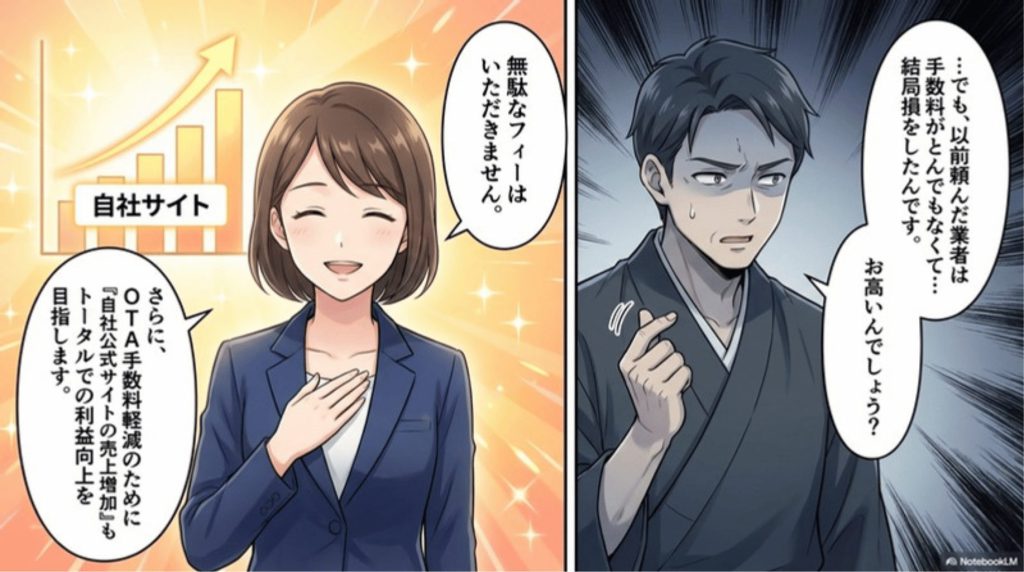 話はガラッと変わりますが先日WEBの記事で、とある宿泊施設様で、今お願いしている「宿泊コンサルタント会社」に決めた理由が載っておりました。