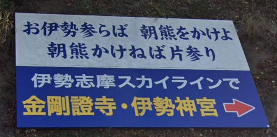 ※この看板に書かれている「伊勢志摩スカイライン」というのは伊勢と鳥羽を結ぶ有料道路です。